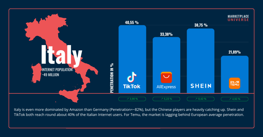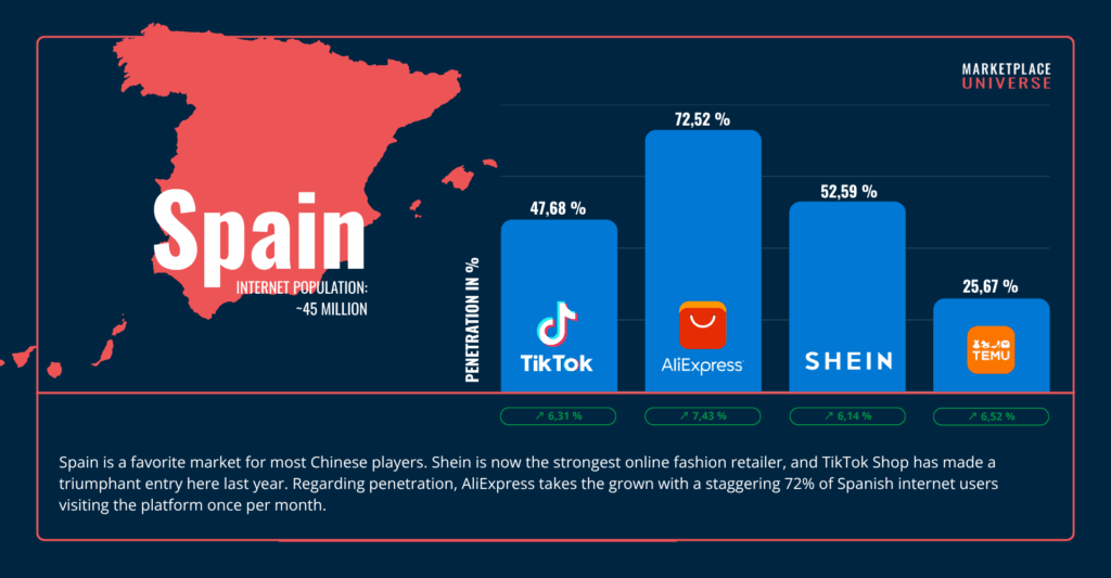 In Spain and Italy, Chinese platforms are capturing market share aggressively: