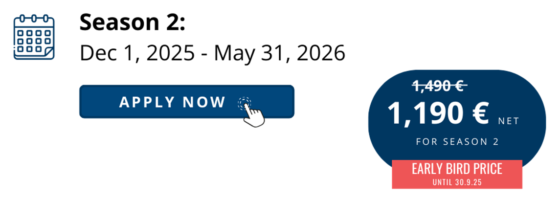 Membership is always per person and covers the full 6-month season. A maximum of two participants per companycan join each cohort.